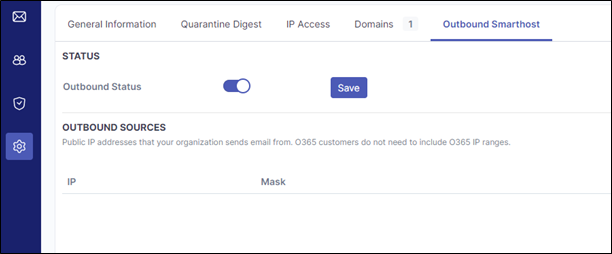 Once logged in, select the “Settings” page in the nav bar and open the “Outbound Smarthost” tab.