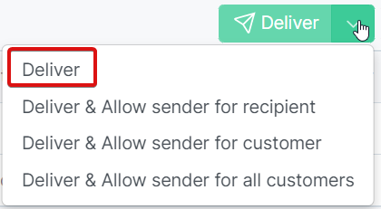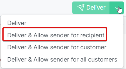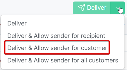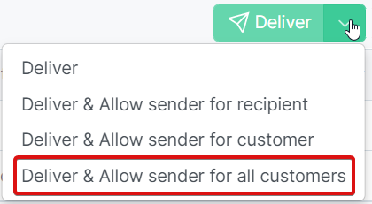 Select the "Deliver & Always Allow Sender for customer" option to deliver the email. An allow rule will be created for the sender’s email address to the customer's entire organisation.