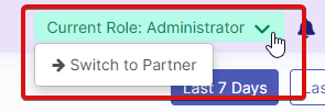 When a partner administrator signs into the domain, they will have the option to swap between the partner view and MSP domain by using the “Switch to Partner/customer” button.