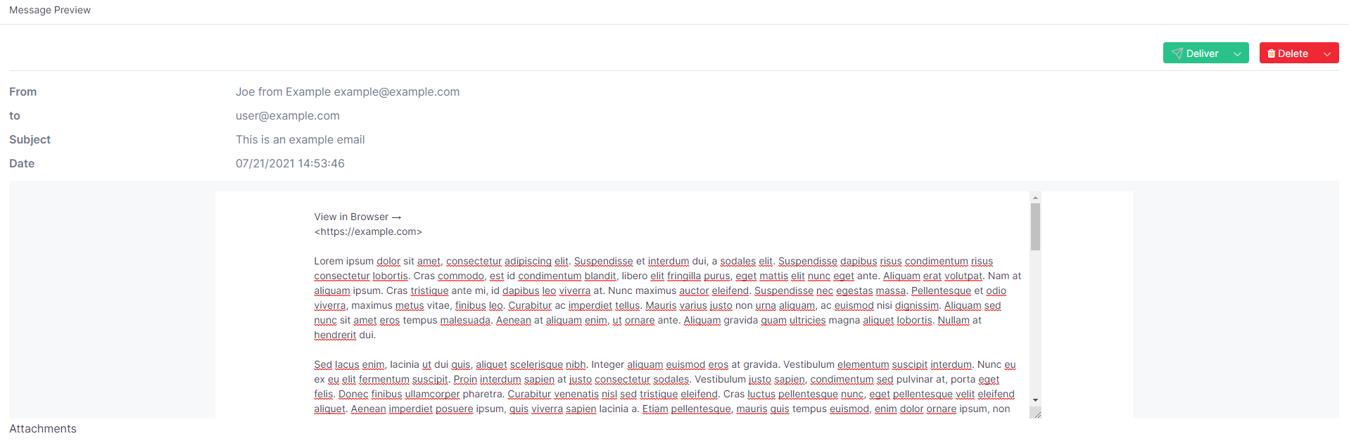 Once opened in the browser, you can decide to either deliver the email or delete the email. The below articles explain the features further: